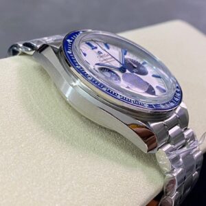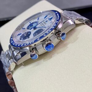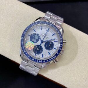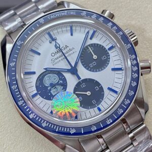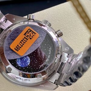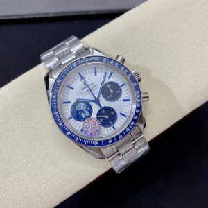 Omega Snoopy 150th Anniversary watch is a high-quality 1:1 Superclone of the original Omega Speedmaster Silver Snoopy Award 50th Anniversary watch. It features a 42mm stainless steel case with a black ceramic bezel and a Hesalite crystal. The dial is black with a silver Snoopy logo and a moon phase display. The watch is powered by the VS Factory 3861 automatic movement. which is a clone of the original Omega Co-Axial Master Chronometer caliber 3861.